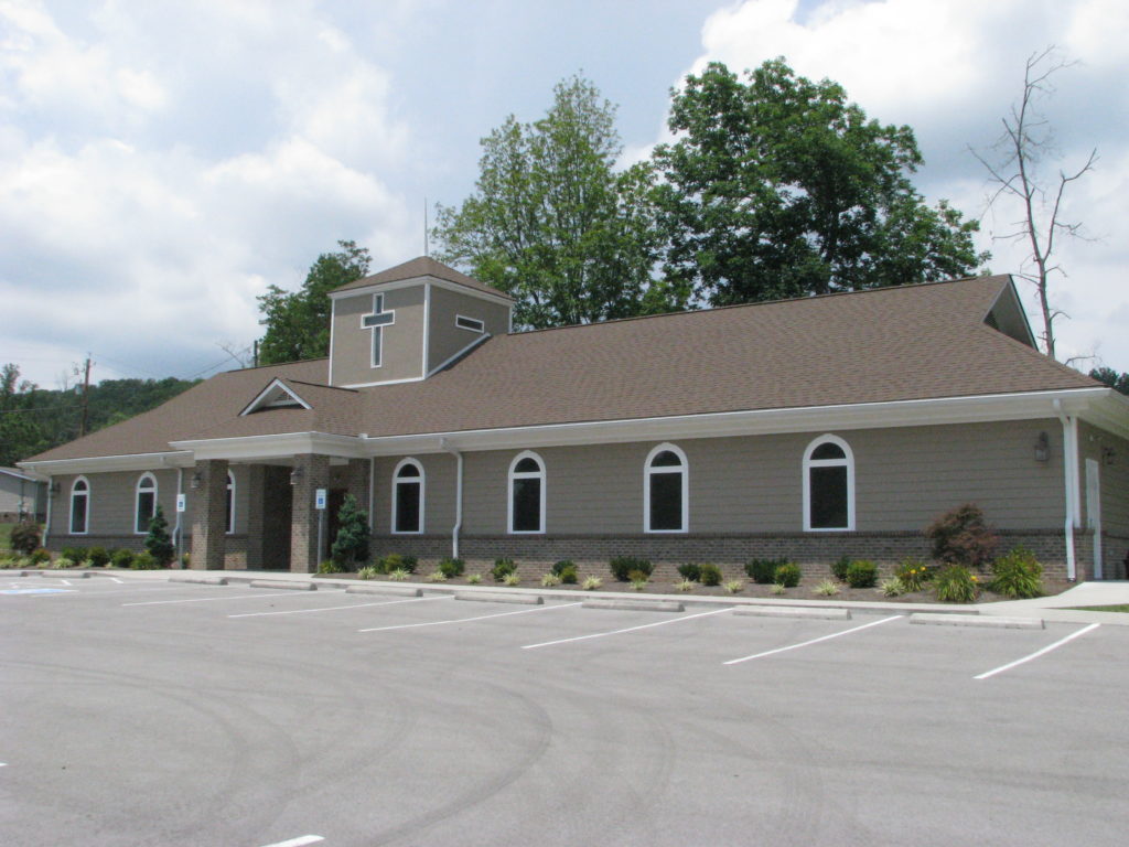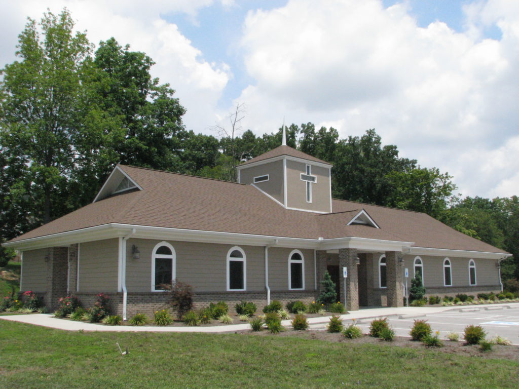 The original church, which was built in the late 1880s, was destroyed in February 2008 when a large oak tree fell through the sanctuary, damaging it beyond repair. The new church is about 3,500 sq. ft. and consists of (four) classrooms, restrooms, pastor's office, sanctuary, foyer, baptistery and changing room. We were able to salvage some of the wood from the original church and use it for the window sills and trim in the sanctuary, and to construct a large cross that hangs in the foyer.