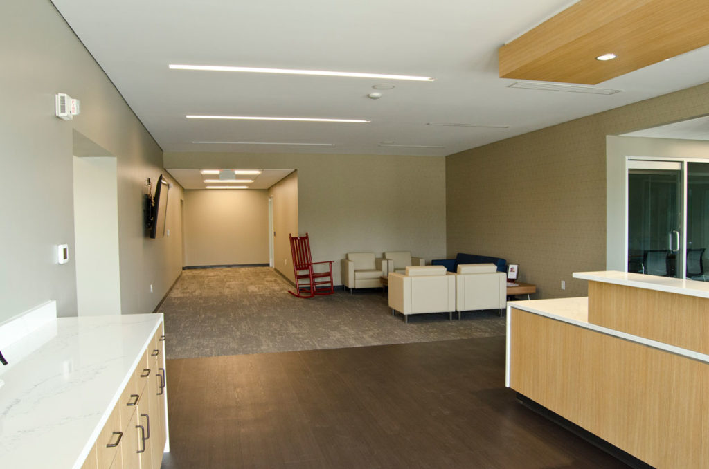 This was an existing building with dated architectural features, such as small windows and concrete awnings. We completely gutted the inside and created a new updated open floor plan, new bathrooms, and managers offices consisting of glass walls. On the outside we used updated materials such as metals, woods, and EIFS to create a more modern and classic design combination.